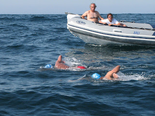 Eu a representar a ANE e como organizador pela Open Water Portugal, o Rodrigo Costa e o Rogério Tavares do Clube Natação do Litoral Alentejano tivemos então a companhia do Mário Bonança do Sporting, do Daniel Viegas do Clube Natação da Amadora e do francisco Freitas dos Pimpões das Caldas da Rainha, concluímos esta travessia em 4h10m12s.
